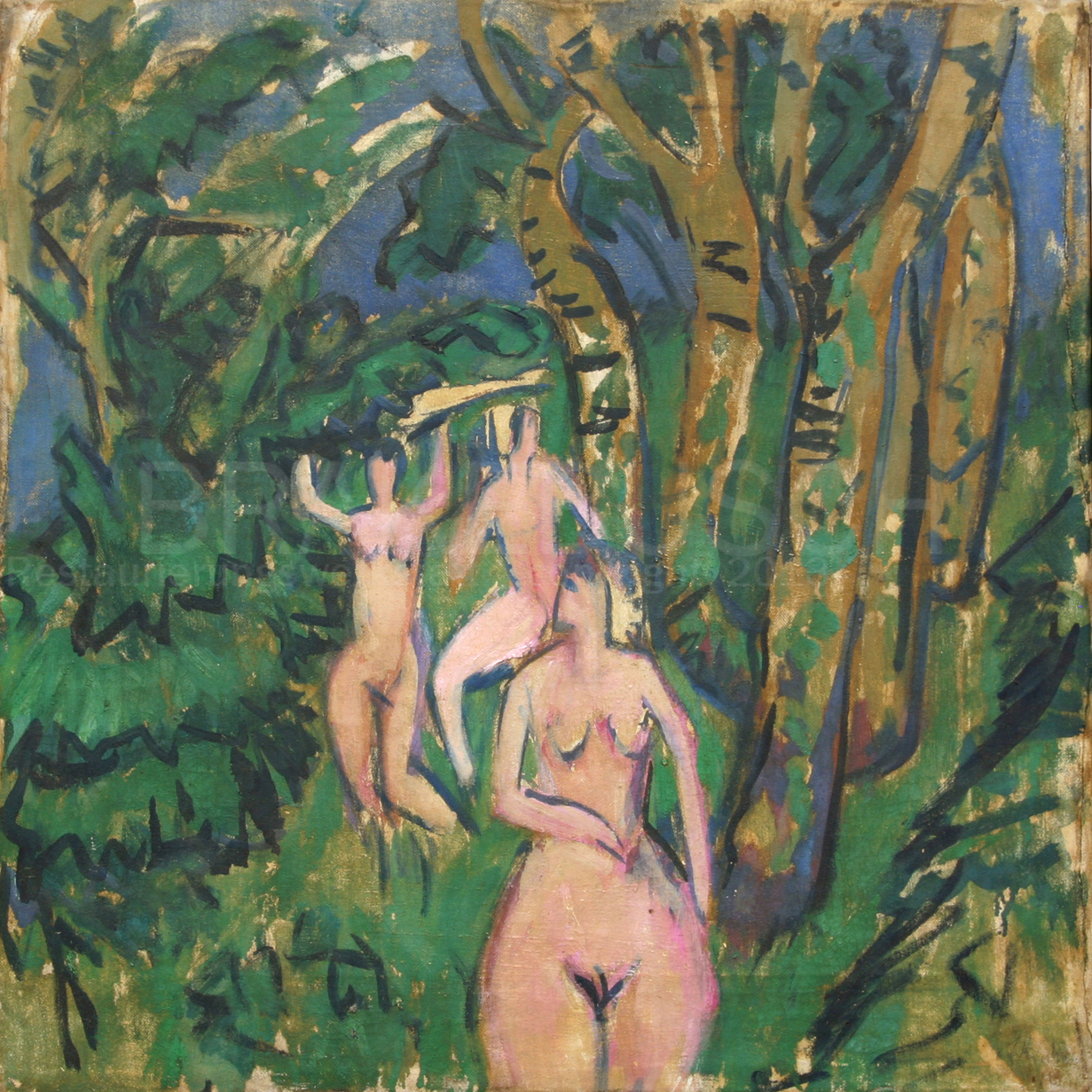This painting by E.L. Kirchner "Akte im Wald" from 1912 had been varnished in the past. Kirchner was a fierce opponent to varnishing and was aiming at a matte surface with luminous and brilliant colour.